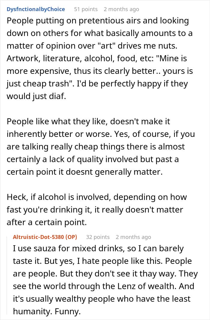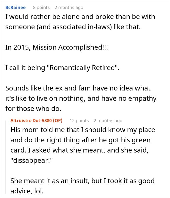 Staying with someone condescending can slowly erode your confidence and sense of self. In this case, the author shared how their partner and in-laws acted “elite,” giving them a humiliating nickname and mocking their background. Situations like these highlight the importance of recognizing disrespect and taking action because everyone deserves to be treated as an equal. What’s your take on handling condescending people?