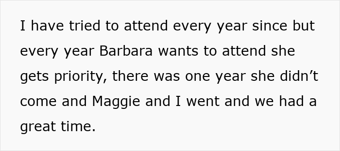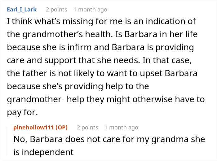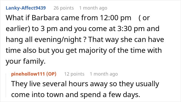 Luckily, the man took the OP’s words to heart, and he found a compromise for both her and Barbara. He decided that Maggie could be allowed over, but that she’d have to be in the bedroom, which the poster was okay with.