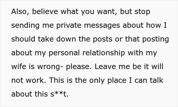 Well, it looks like this took an unexpected turn. The OP posted an update sharing that his wife was cheating. He emphasized that his wife’s friend sent him videos with the caption: ‘in case you don’t realize you’re replaceable to her.’ OP vented about his feelings, stating he can’t handle it and even drank for the first time in the decade.