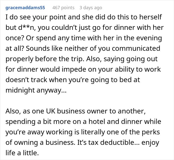 At the heart of this conflict is the concept of selective hearing, where an individual filters out information that doesn’t align with their desires. The surveyor was crystal clear about the budget nature of the hotel and the intensity of the work schedule. However, his partner appears to have fallen into the trap of confirmation bias in relationships, where she only processed the “London” part of the trip and ignored the “6 AM start” part. This led to a series of mismatched expectations that could have been avoided if she had practiced better active listening skills. In a healthy partnership, when someone says they are busy, the supportive response is to ask how to make their day easier, not to add the emotional labor of a surprise social calendar to their plate.