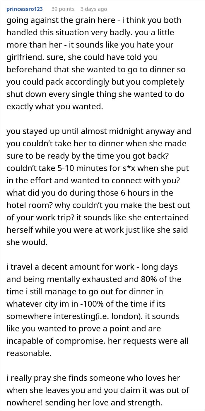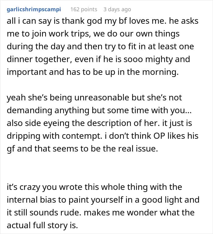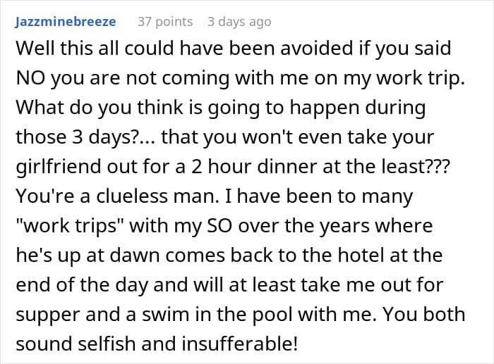 But one man’s GF thought his work trip was supposed to be focused on her