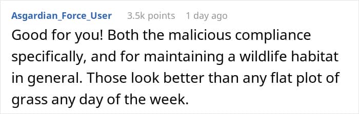 However, instead of cutting down their beloved yard, the couple decided to see if there was a legal way to respond — and sure enough, they discovered how to get back at the local busybody.