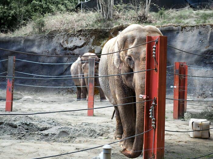 Was on an inside the operation – behind the walls corporate trip to big western USA zoo. Two employees took us around unseen side of elephant enclosure. Picture gate made of metal bars about 4 inches wide and big elephant tall. Employees repeatedly said, “Stay 10 feet from bars.” Elephant had recently grabbed someone with its trunk. They were bludgeoned to death as elephant repeatedly slammed them into gate.