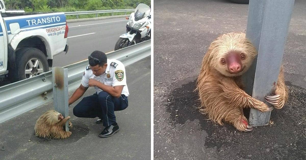 Police Officer Saves Sloth Who Was Trapped In The Middle Of A Highway